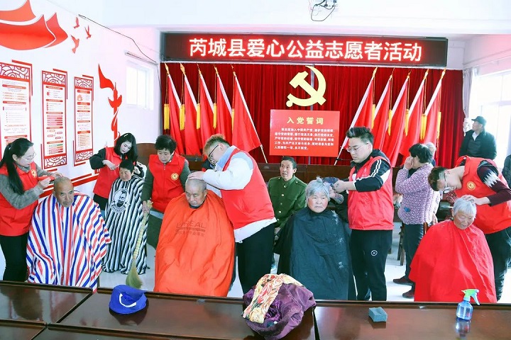 本次活動經(jīng)過精心籌備,芮城縣愛心公益志愿者協(xié)會的30余名志愿者分工明確,廚師組、后勤組、理發(fā)組、義診組、文藝演出組,他們緊張有序地忙碌著,為老人們提供各項志愿服務(wù)。