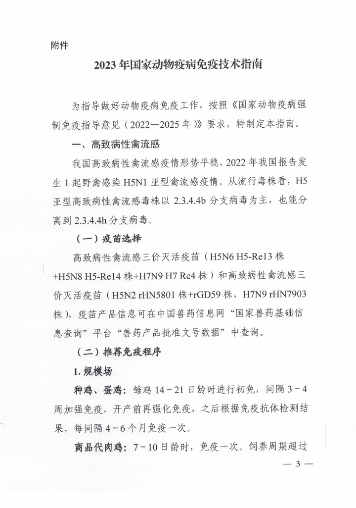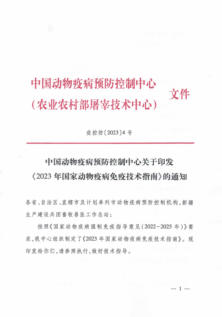 中國動物疫病預防控制中心:《2023年國家動物疫病免疫技術(shù)指南》