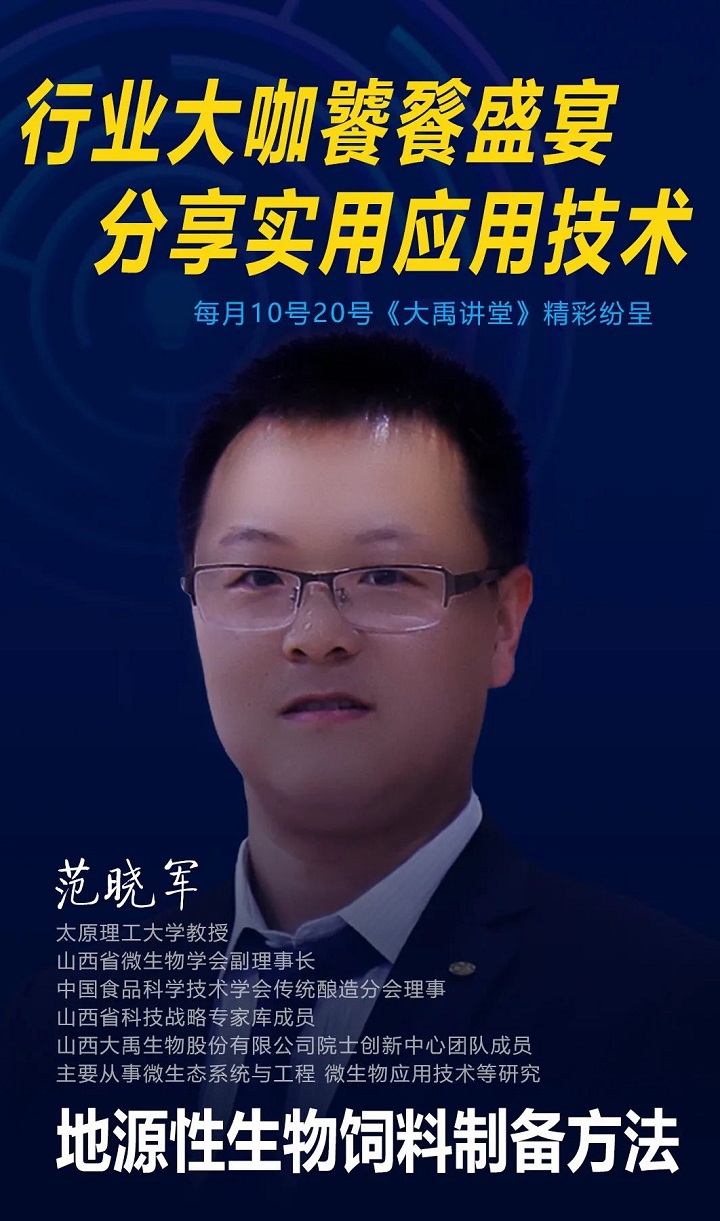 《大禹講堂》是大禹生物技術(shù)團(tuán)隊(duì)內(nèi)部技術(shù)培訓(xùn)、交流平臺(tái),每月的10日、20日進(jìn)行兩期。本期范曉軍老師從以下四個(gè)方面講解了地源性生物飼料制備方法: